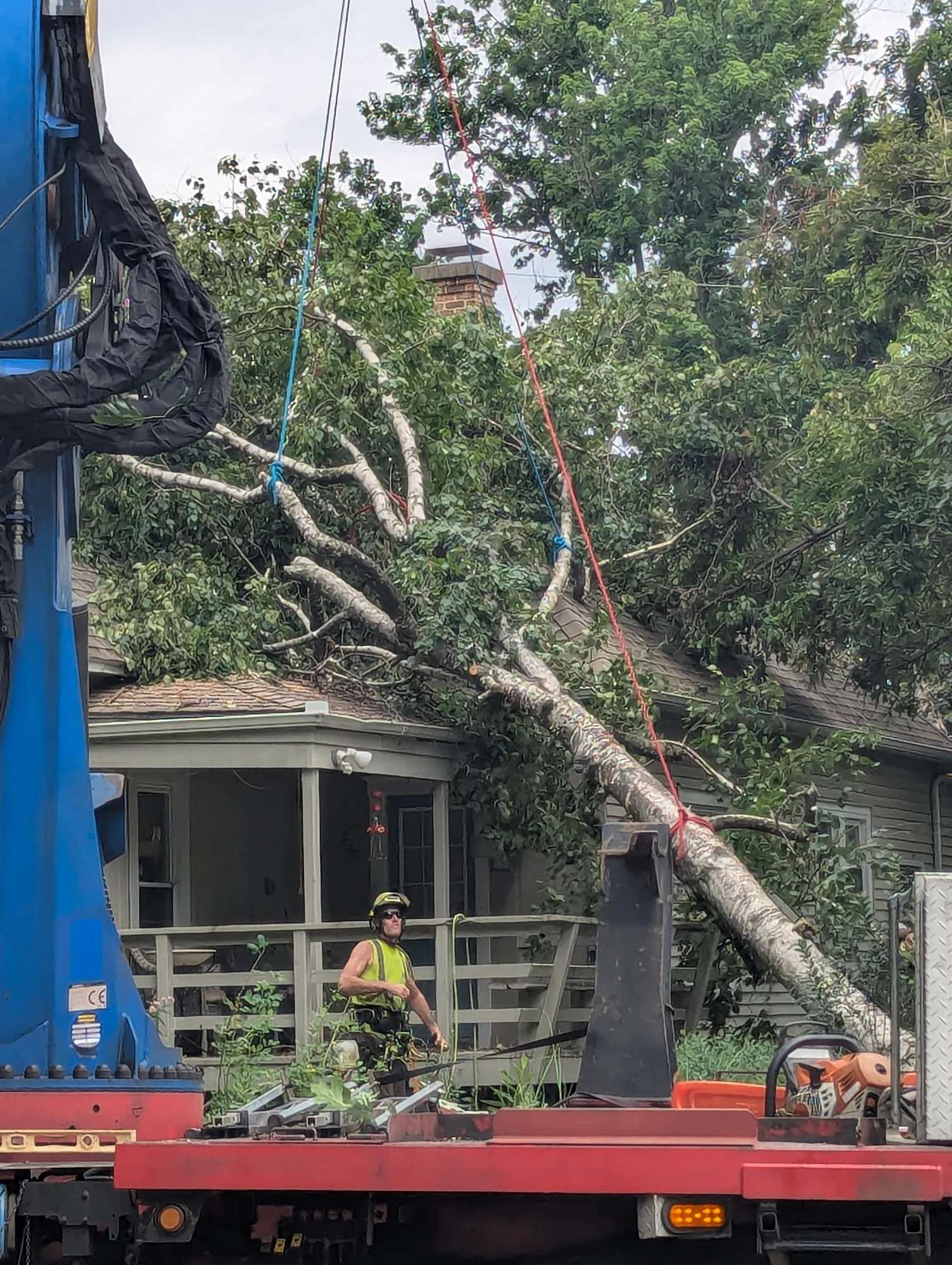 Tree came off without damaging John’s roof any further. Yard’s cleared now, and he’s not staring at a mess anymore.